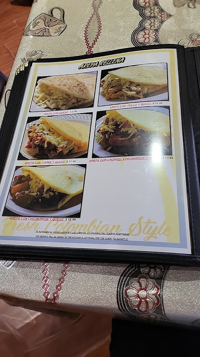 Complement your meal with refreshing drinks like Natural Juices or bubbly Colombian sodas. Don't forget to indulge in the delightful Colombian bakery treats, including decadent Buñuelos and Croissant de Queso.